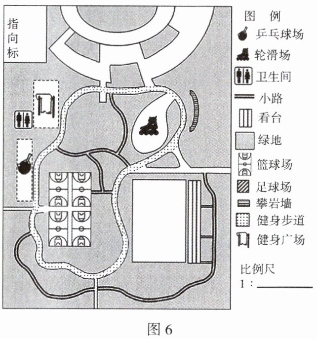 (6)请按图例在地图中绘制足球场。