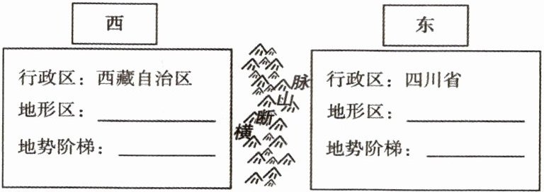 (1)横断山脉两侧地形、地势差异显著。请将下表填写完整。