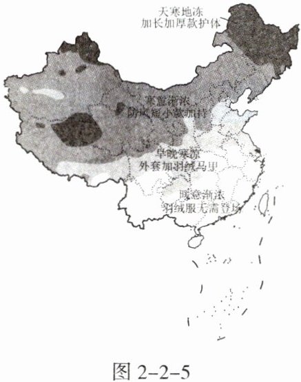 2. 造成东北和江南地区羽绒服长短和厚度差异的主要因素是( )