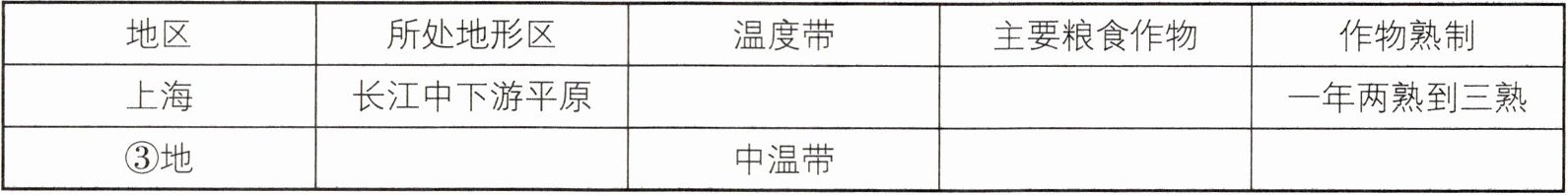 |地区|所处地形区|温度带|主要粮食作物|作物熟制|
