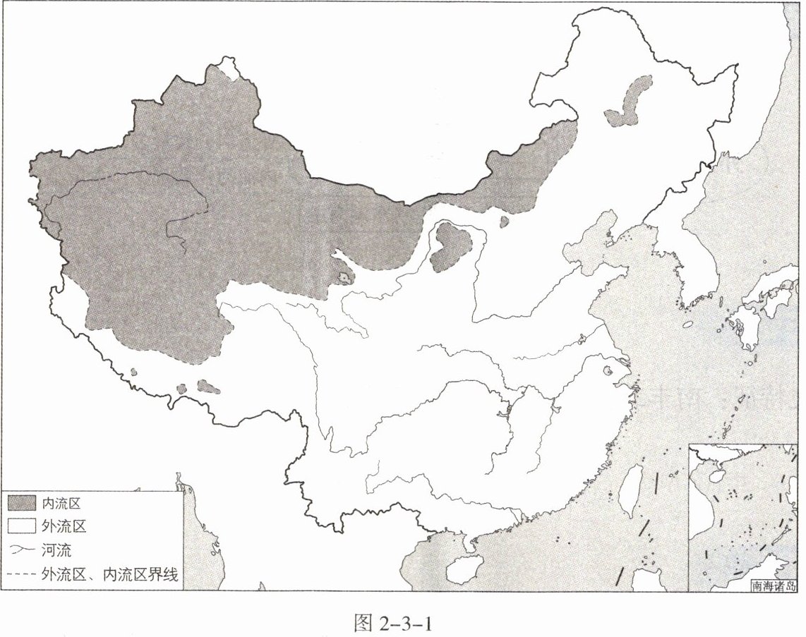 在图2-3-1中相应位置填写我国主要河流和湖泊的名称。