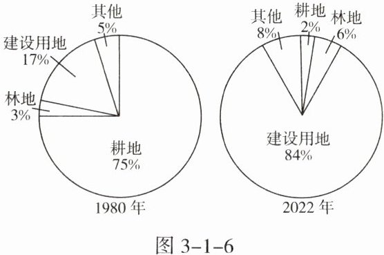 遵义市某中学的地理兴趣小组对学校所在村的土地利用情况进行了调查。图 3 - 1 - 6 示意该村土地利用类型构成。据此完成 8~9 题。
