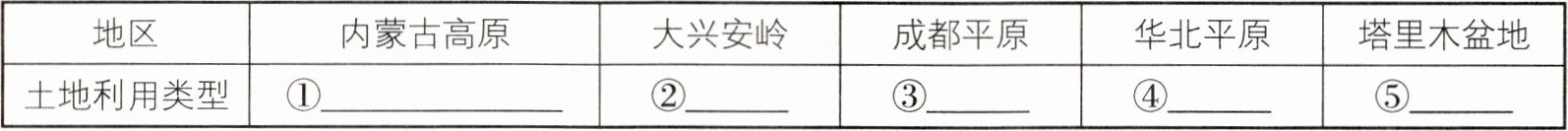 |土地利用类型|①______|②______|③______|④______|⑤______|