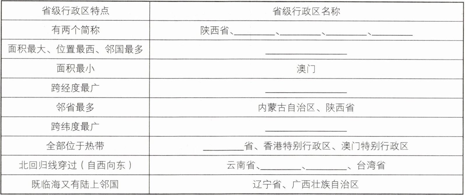 |北回归线穿过(自西向东)|云南省、______、______、台湾省|