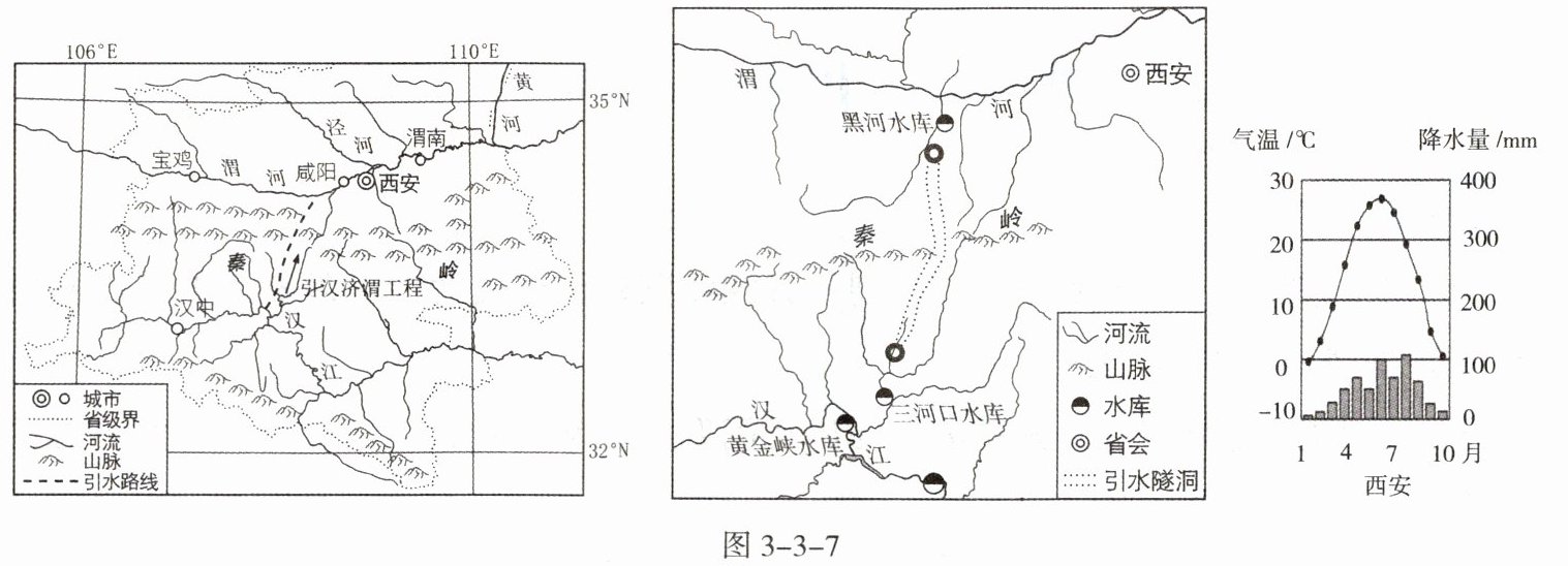 (2)“引汉济渭”工程是将汉江水引入渭河,试说明渭河流域缺水的主要自然原因和社会原因。