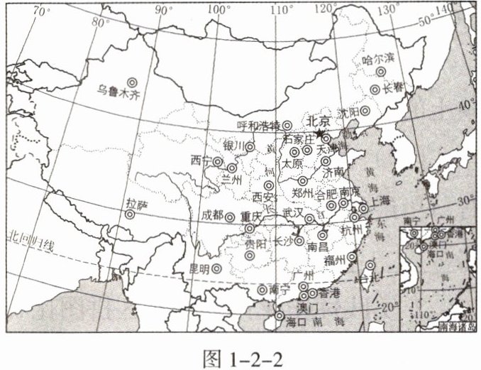 我国是世界上重要的海洋大国,大陆海岸线长 1.8 万多千米。图 1-2-2 为中国行政区划图。据此完成 3~5 题。