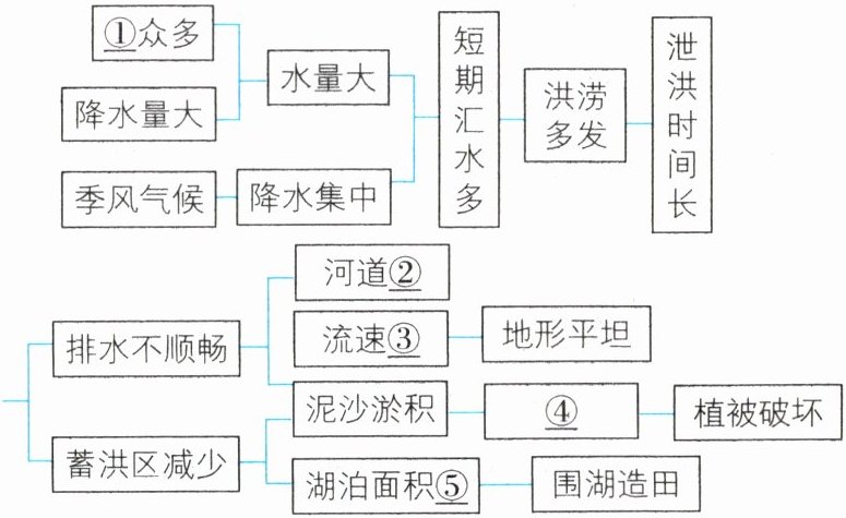 (1)分析长江中游地区洪涝频发的原因,并将思维导图补充完整。