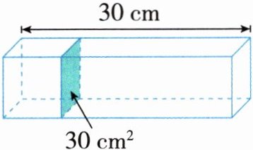 6(新素养·推理意识)把一根长 $3\ m$ 的长方体木料沿与长垂直的截面锯成两段,锯开后的两段木料的表面积之和比原来木料的表面积增加了 $40\ cm^2$。这根木料的体积是多少立方厘米?