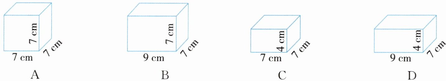 2 老师为同学们准备了 3 根长为 9 cm、8 根长为 7 cm、9 根长为 4 cm 的小棒,用这些小棒能搭成的长方体是(