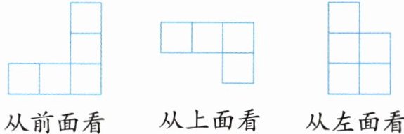 7(新素养·空间观念)用体积是$1cm^{3}$的正方体木块摆成一个几何体,从前面、上面和左面看到的图形分别如图所示,这个几何体的体积是多少立方厘米?