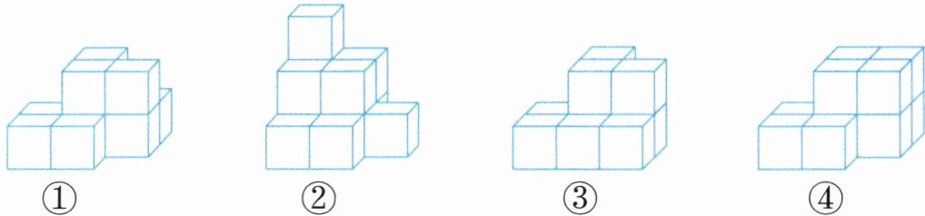 A【解析】物体①由10个小正方体搭成,物体②由12个小正方体搭成,物体③由10个小正方体搭成,物体④由11个小正方体搭成。所用小正方体个数相同的物体体积相同,所以①和③的体积相同。