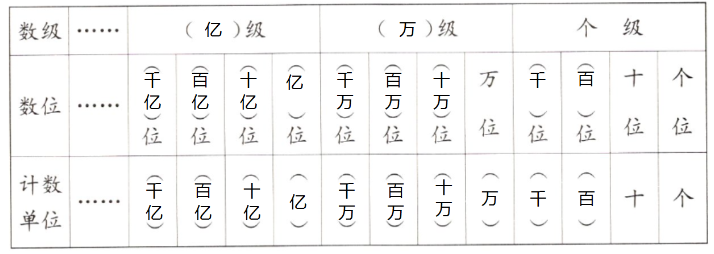 |数位|……|( )位|( )位|( )位|( )位|( )位|( )位|( )位|万位|( )位|( )位|十位|个位|