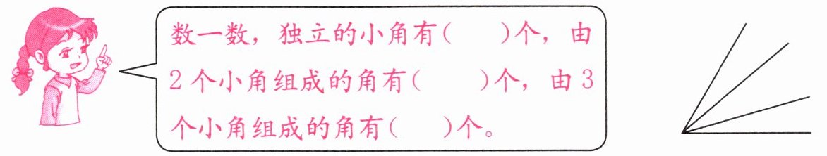 (1)角的大小与角的两边叉开的大小有关,叉开得越大,角就越大。 (