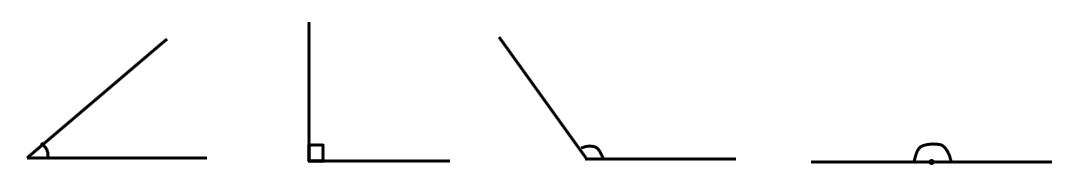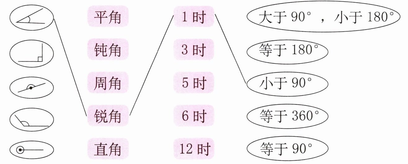 1. 分别画一个锐角、一个直角、一个钝角和一个平角。
