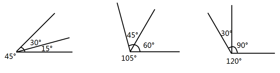 3. 用一副三角尺,分别画出 $15^{\circ}$、$105^{\circ}$ 和 $120^{\circ}$ 的角。