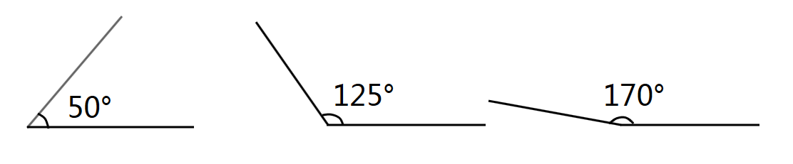 2. 用量角器分别画出 $50^{\circ}$、$125^{\circ}$ 和 $170^{\circ}$ 的角。