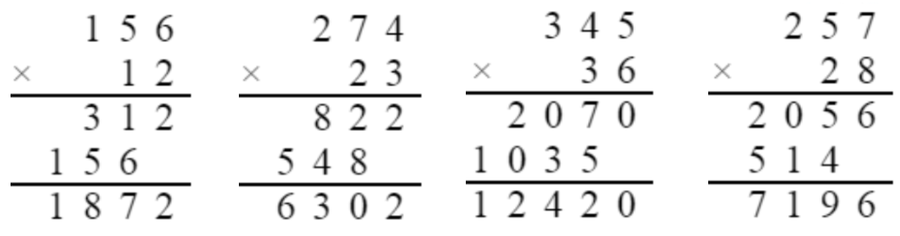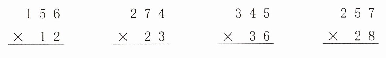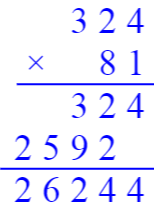 $324×81= $ $$ $186×15= $ $$ $32×244= $