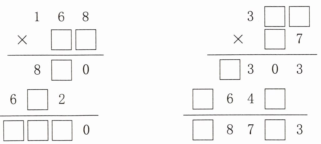 3. 在□里填上合适的数字,使竖式成立。