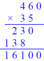 $138×42= $ $460×35= $ $208×69= $