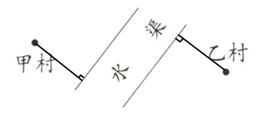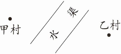 一条水渠从甲村和乙村之间通过,甲村和乙村要各修一条小河和水渠相连,怎样修小河最短?