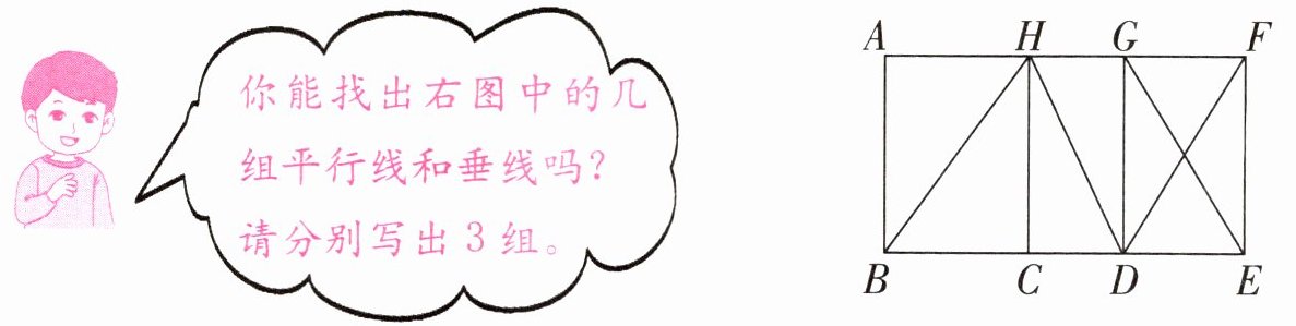 2. 下面的图形中,哪两条边互相平行?哪两条边互相垂直?