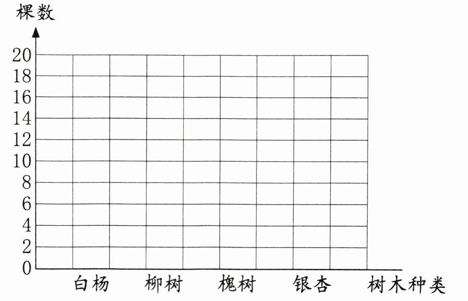 白杨:20 棵 柳树:16 棵 槐树:8 棵 银杏:12 棵