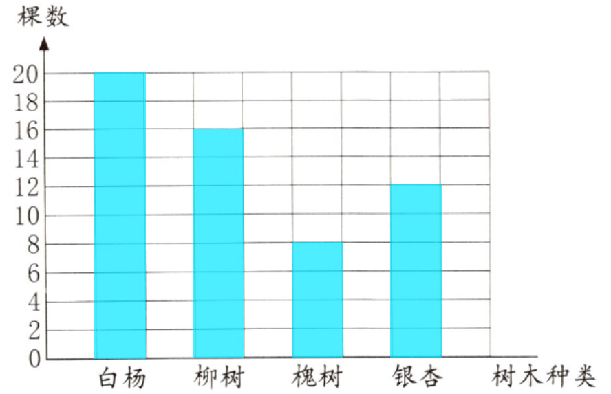 (3)上图每格代表( )棵树。( )树最多,( )树最少。
