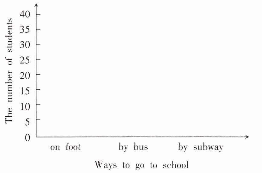 四、Read and draw. Lin Tao写了一份关于全班同学上学出行方式的调查报告。请读一读,根据调查数据完成条形统计图。