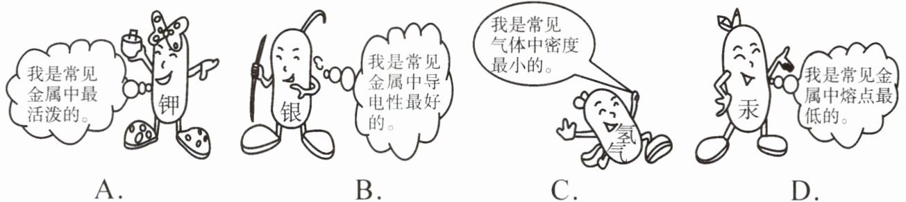 5. 下列各图是单质家族“四兄妹”的对话,其中描述单质的化学性质的是(