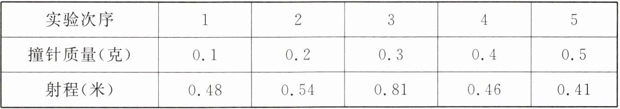 (2) 在其他条件相同的情况下,选择质量在0.2~0.4克的撞针进行进一步实验