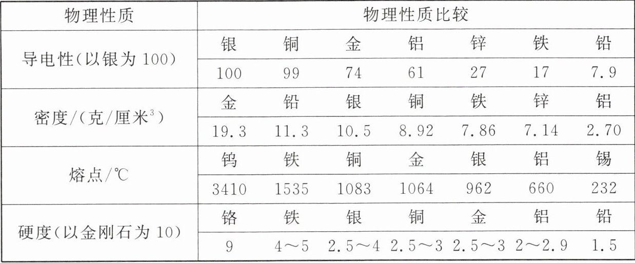 (1)为什么菜刀、锤子等通常用铁而不用铅来制作?_。