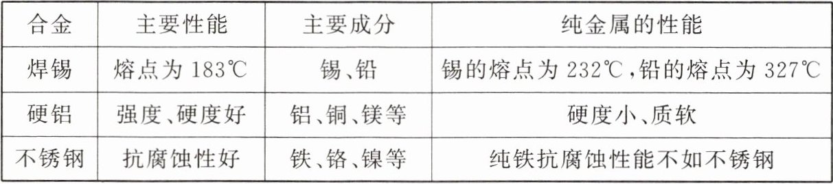 由表中信息可以推断,与组成合金的纯金属相比,合金的优点一般有