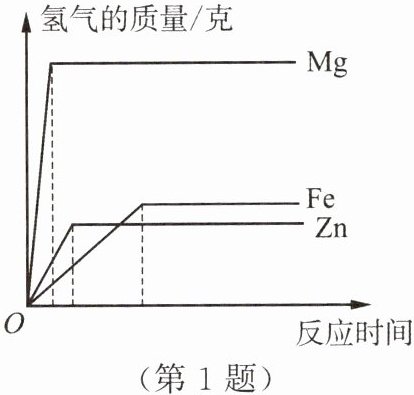 1. 相同质量的镁、铁、锌三种金属,分别与足量的、相同溶质质量分数的稀硫酸充分反应,生成氢气的质量与反应时间的关系如图所示。下列说法中,正确的是(
