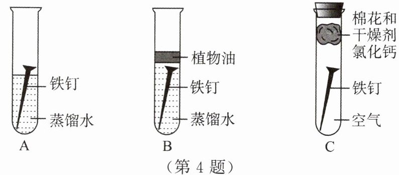 。②一周后,观察A、B、C中的铁钉,只有A中的铁钉出现了明显的锈蚀现象,由此得出铁钉锈蚀需要与