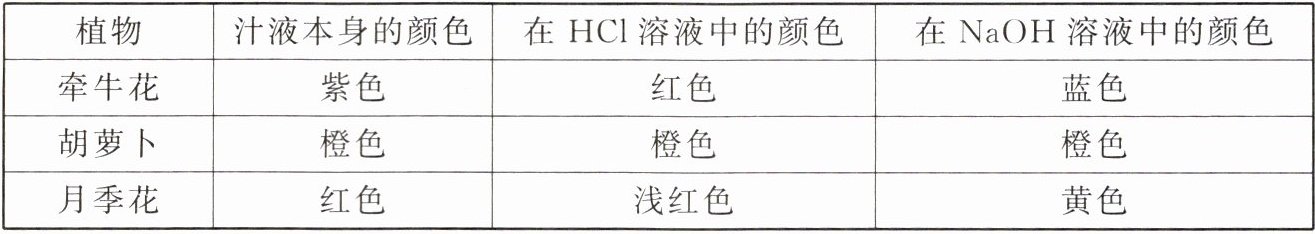 (1)经过探究发现这三种植物中,汁液能作为理想的酸碱指示剂的是