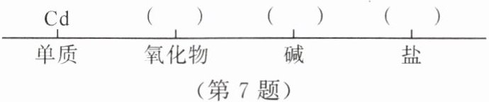 7. 镉(${Cd}$)及其化合物在电镀和电池、颜料的生产等领域中有广泛应用。镉是一种“氢前金属”,金属活动性介于锌和铜之间。镉元素常见化合价为$+2$。