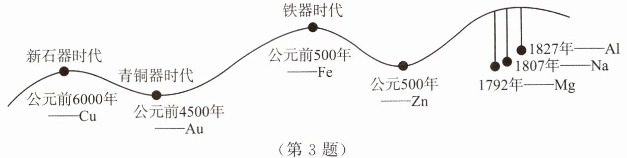 3. 金属材料的使用作为一个时代的标志,见证了人类文明的发展过程。历史上人类冶炼不同金属的大致年代如图所示。