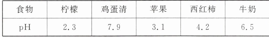 3. 参照下表中某些食物的近似 pH 判断,下列说法中,错误的是(