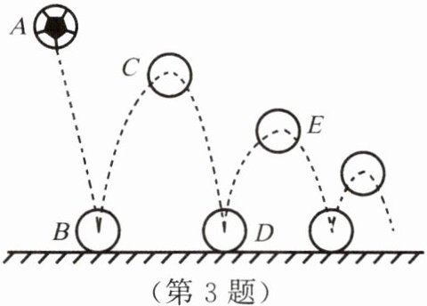 3. 如图所示为足球从A处落到地面后反复弹起和落下的示意图,虚线为足球的运动轨迹。下列说法中,正确的是(