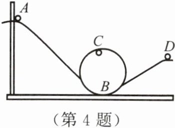 4. 如图所示,小球沿轨道由静止从A处运动到D处的过程中,忽略空气阻力和摩擦力,仅有动能和势能的相互转化,则(