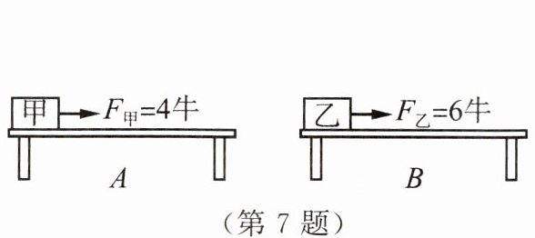7. 如图所示,甲、乙两个物体在 $ A $、$ B $ 两个水平桌面上做匀速直线运动,据此可以确定(