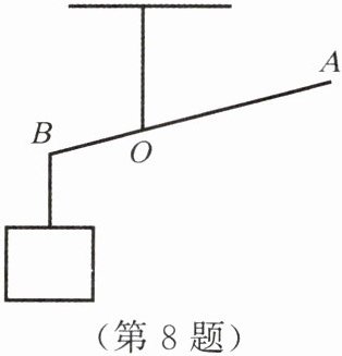 8. 如图所示,一根质量分布均匀的直杆AB长为1.5米,用细绳系于O点将其悬挂起来,并在B端挂一个重为30牛的重物,此时直杆处于静止状态,其中OA=2OB。