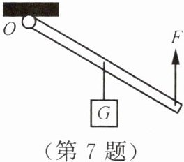7. 如图所示,F始终竖直向上,在匀速提升重物G至水平位置的过程中(