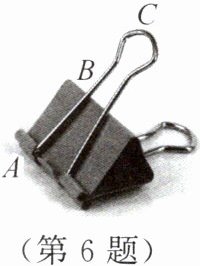6. 如图所示为同学们常用的燕尾夹,AB=BC。当用力按下C点打开夹子时,可把