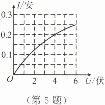 5. 标有“6 V 1.5 W”字样的灯泡,通过它的电流随其两端电压变化的关系如图所示。若把两只这样的灯泡串联起来,接在8伏的电源两端,每只灯泡的电阻为