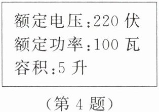 4. 室内空气太干燥对人的健康不利。现在市场上出售一种室内空气加湿器,其铭牌如图所示。加湿器的工作原理:通电后,超声波发生器产生超声波,使水振动而雾化。请回答下列问题:
