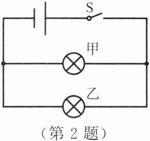 2. 小嘉同学用甲、乙两个小灯泡连接了如图所示的电路,闭合开关S后,甲、乙两灯均正常发光,但甲灯比乙灯亮。下列说法中,错误的是(