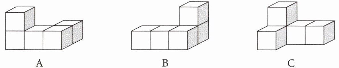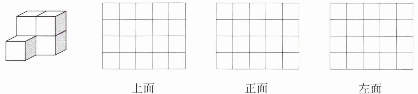 1. 下面是用5个小正方体搭成的立体图形,分别画出从上面、正面和左面看到的形状。