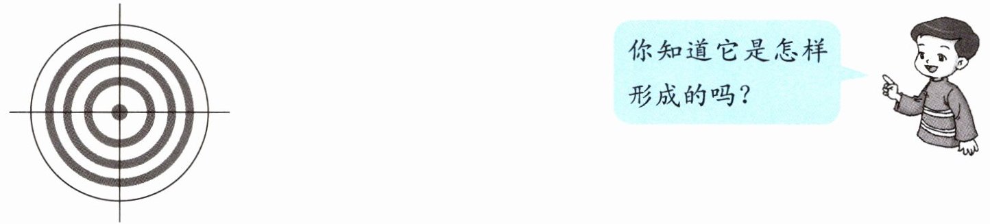 以同一个点为圆心,用圆规画出半径不同的多个同心圆,再交替涂上不同颜色(或阴影)形成。