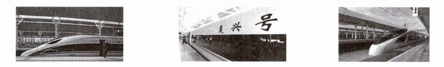 5. 复兴号是我国自主研发、具有完全知识产权的新一代高速列车。下图是列车从摄影师面前驶过,摄影师拍摄的三幅照片,请你用①②③标出摄影师的拍摄顺序。